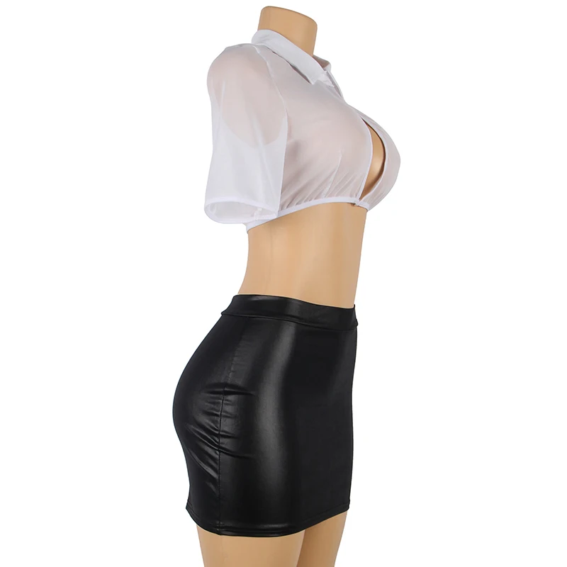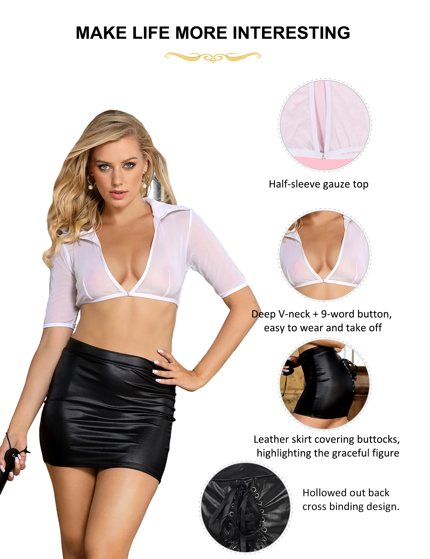 Comeondear Secretária De Couro Traje Plus Size Lingerie Sexy Pornos Meia Manga Camisa Saia Papel Ternos De Jogo Roupa Interior Sexy