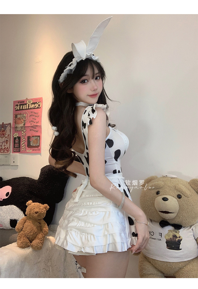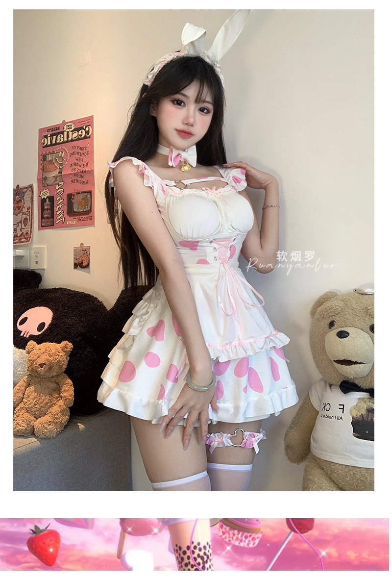 Lolita anime cosplay traje empregada role play lingerie sexy coelho vaca roleplaying dupla camada kawaii vestido de festa perna banda conjunto