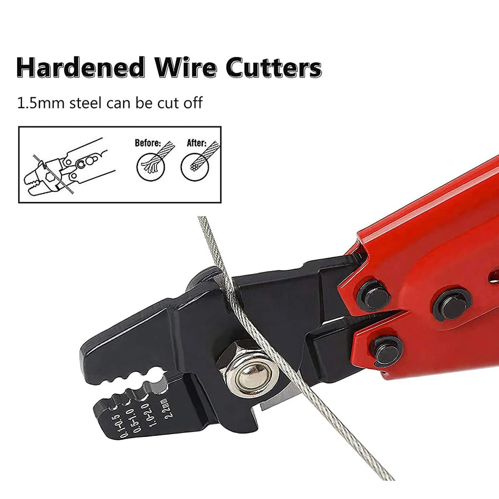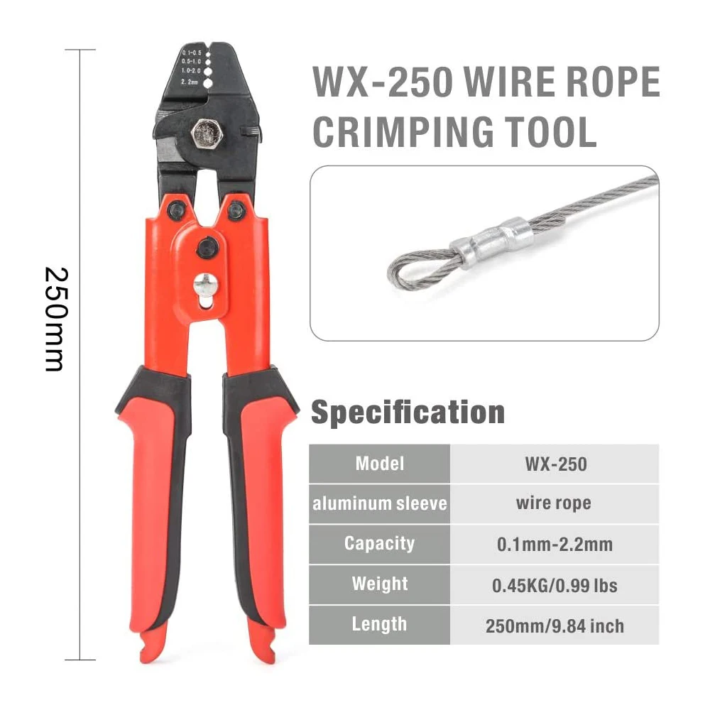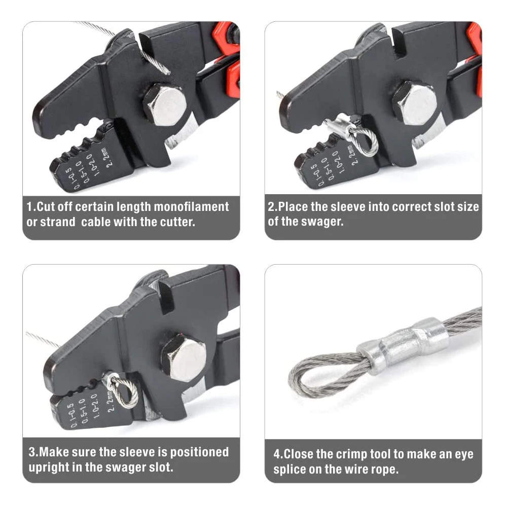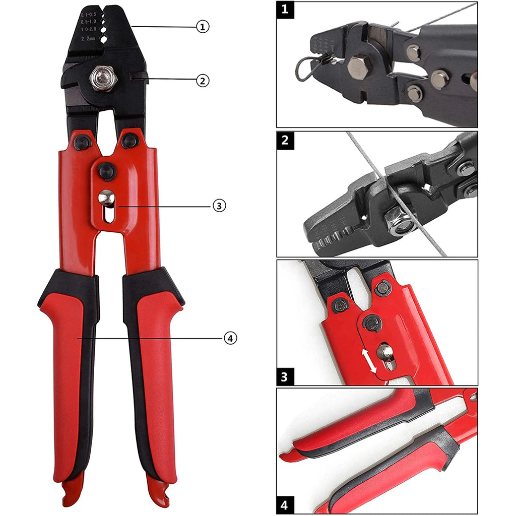 Ferramenta de crimpagem/estampagem de cabo de aço para mangas de virolas de cabo de aço de 2,2 mm e batentes de extremidade de cabo de aço
