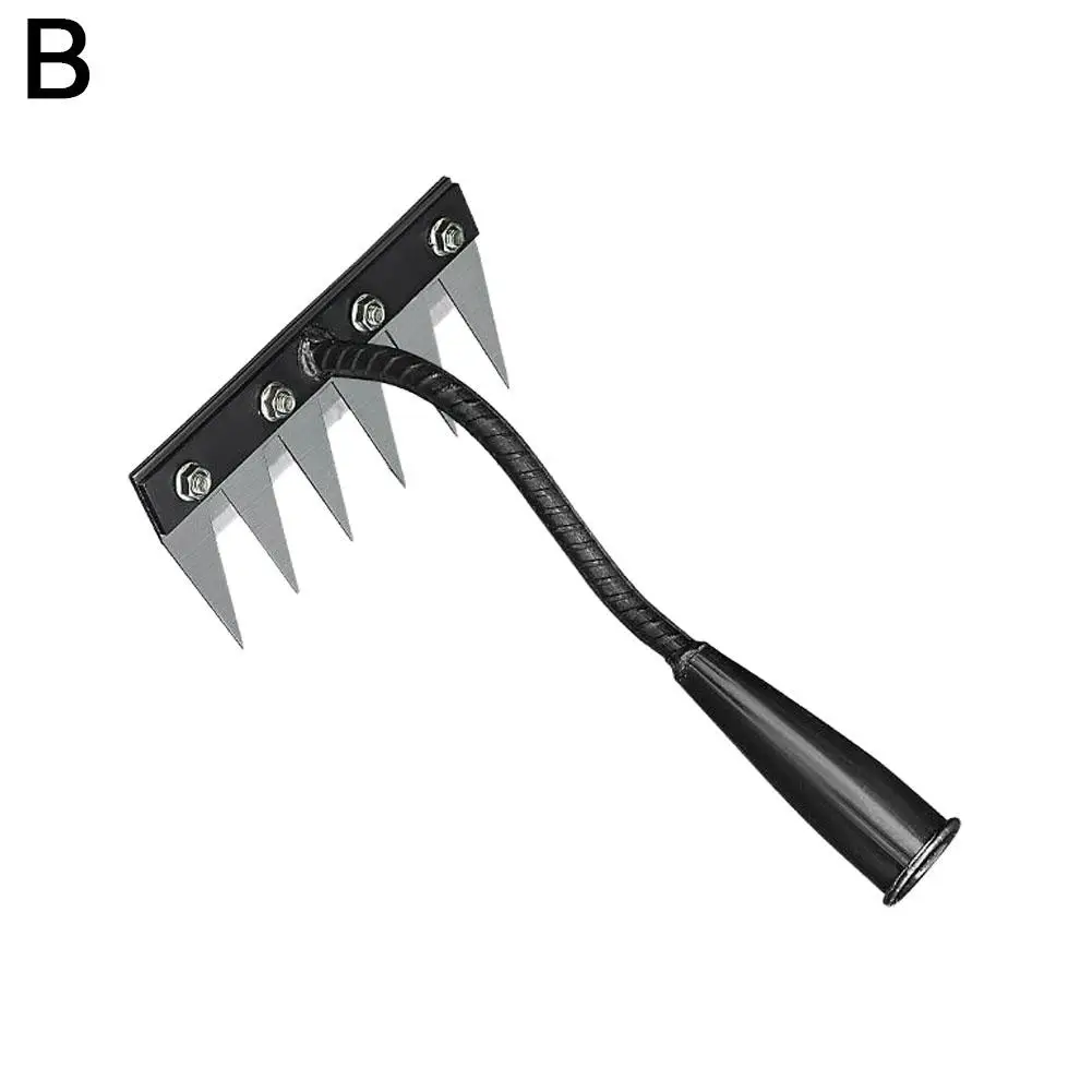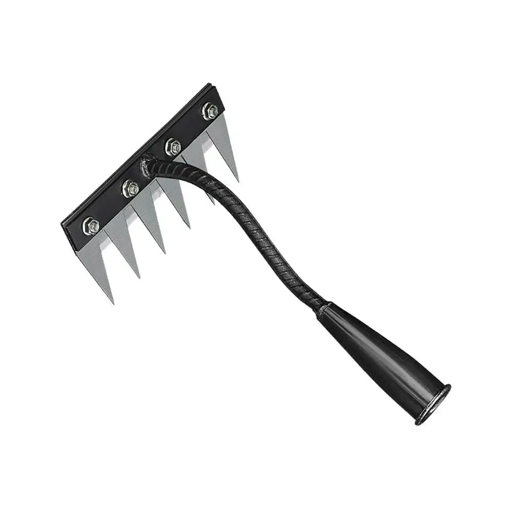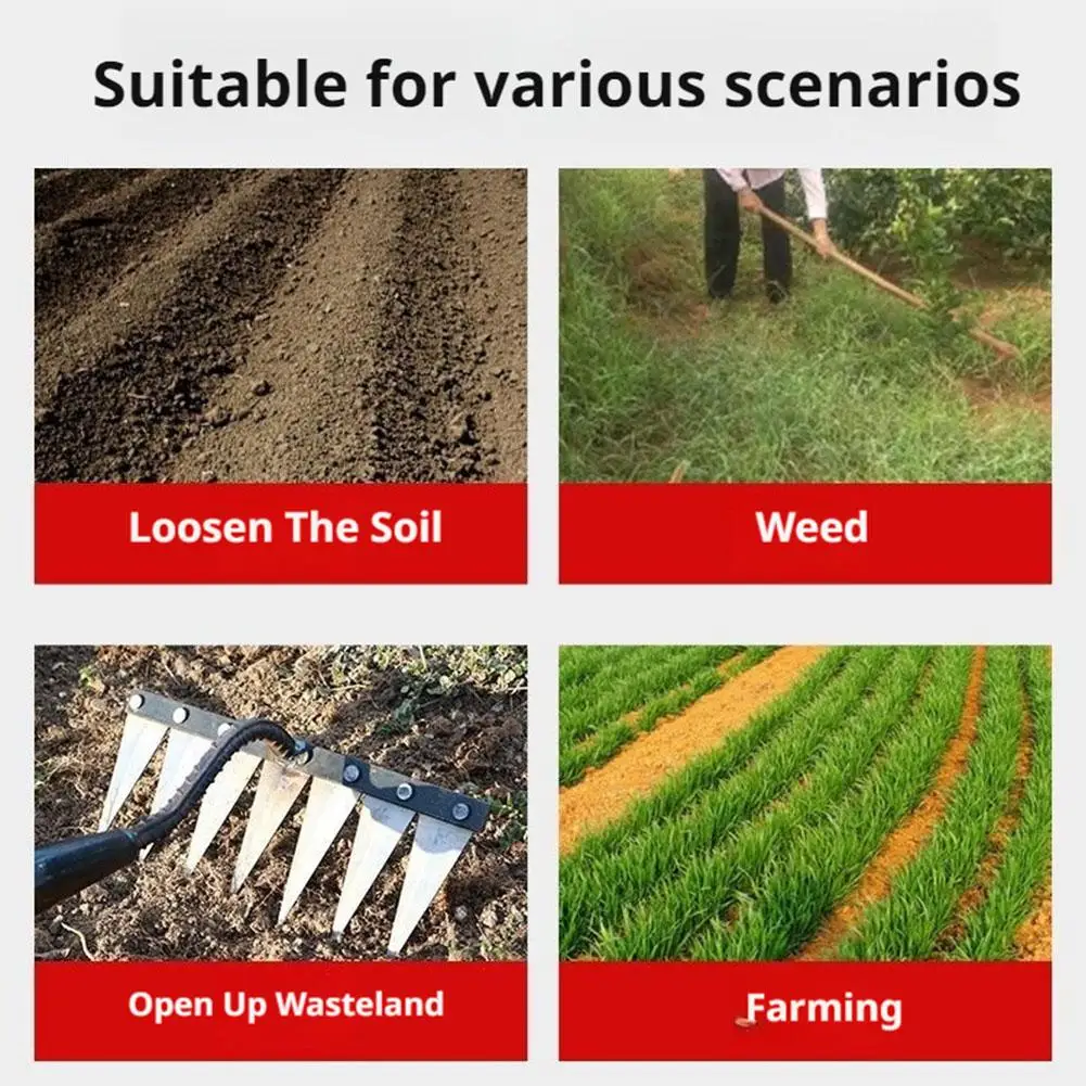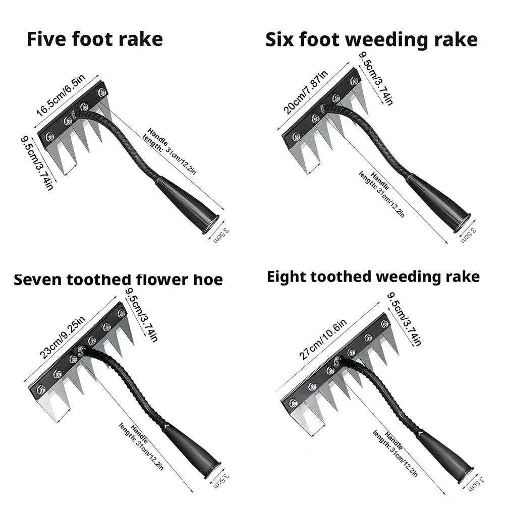 2.Ferramenta versátil: Este ancinho de jardim foi projetado para diversas tarefas de jardinagem e remoção de ervas daninhas.Seus múltiplos dentes permitem a remoção eficiente de ervas daninhas, folhas e detritos de canteiros de jardim, gramados e canteiros de flores.A ferramenta de jardim resistente também pode ser usada para remover e arejar o solo, promovendo o crescimento saudável das plantas
