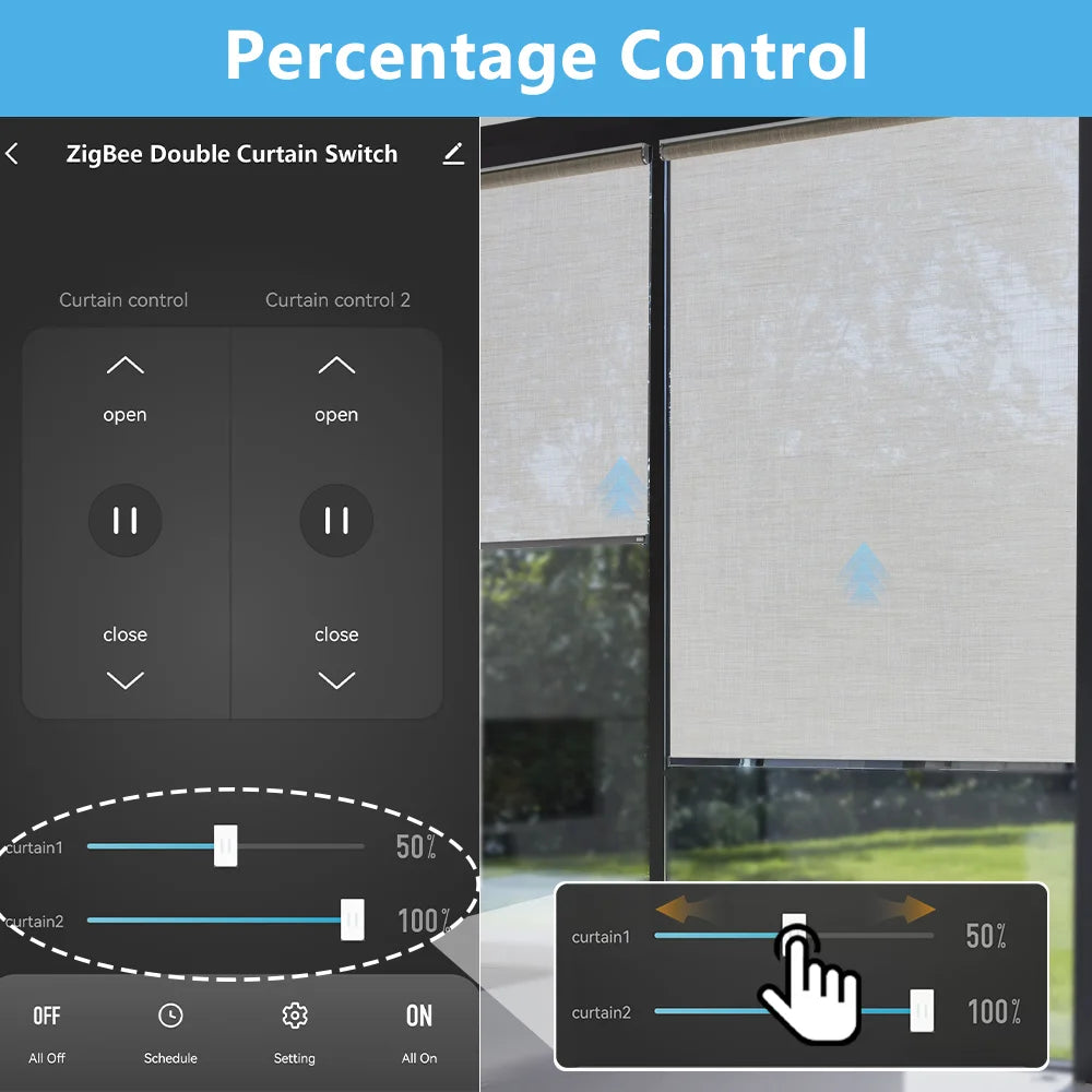 LoraTap Tuya ZigBee 3.0 UE Interruptor de cortina dupla para motor tubular Google Home Alexa Controle de voz Funciona com Zigbee2MQTT DIY