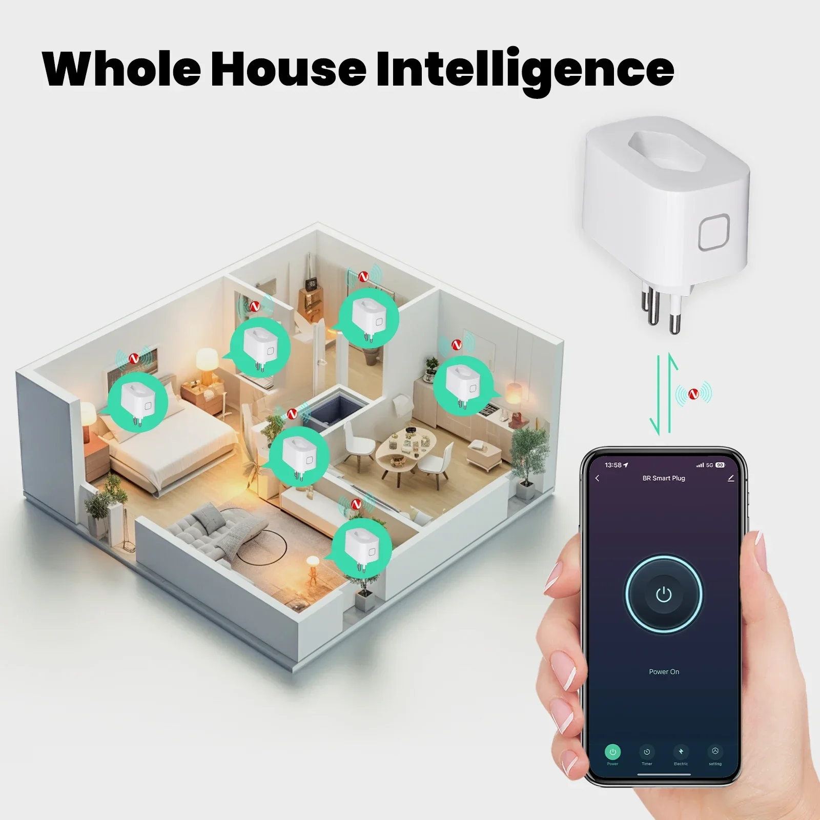 Transforme seus eletrodomésticos em inteligentes com plugues inteligentes, alcançando controle de grupo com um toque e inteligência de toda a casa.