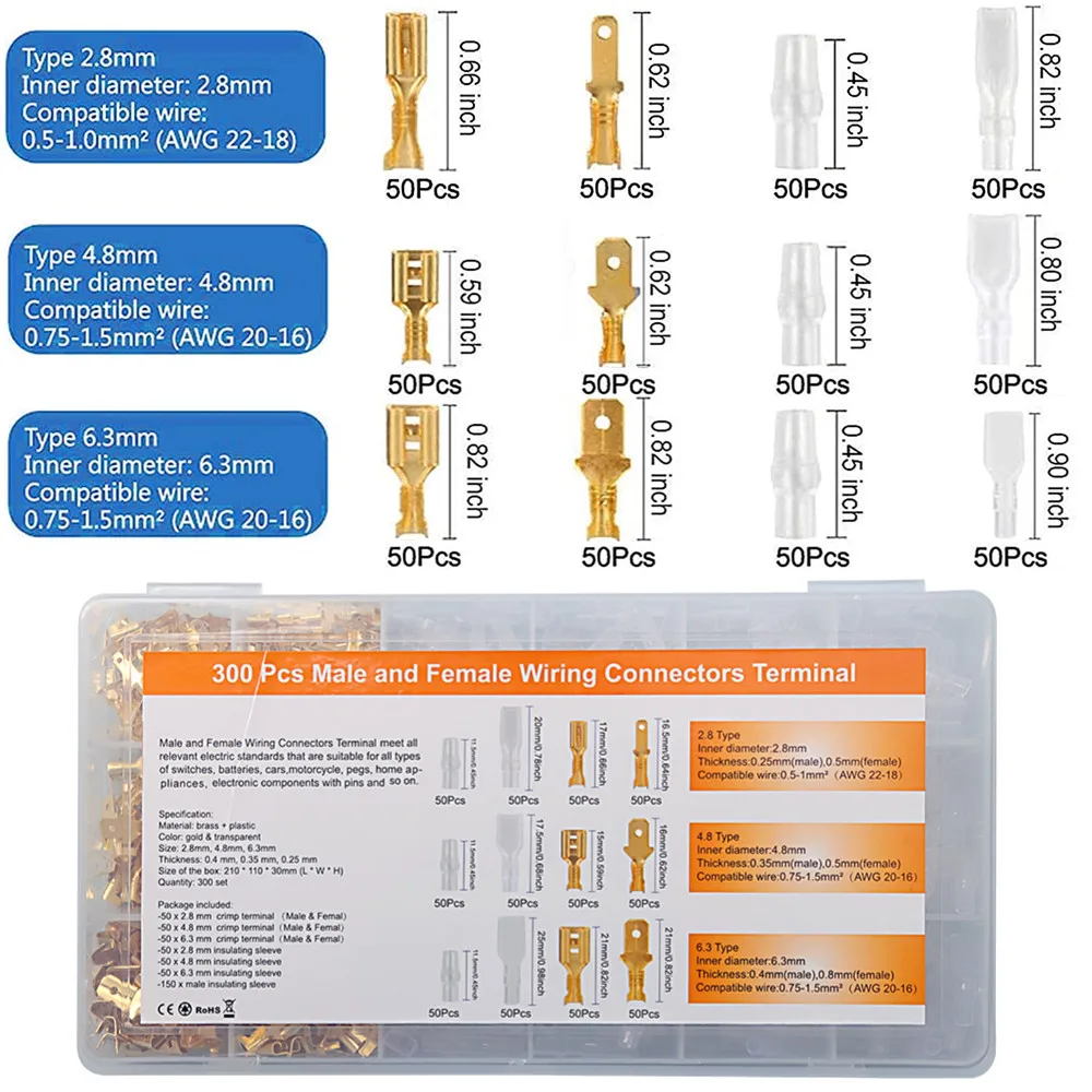 ✅【Amplamente Aplicação】A combinação de ferramenta de crimpagem e conectores de bala de pá pode ser amplamente utilizada para eletrodomésticos, auto, sistema de áudio para bateria ou conexão/desconexão rápida, motocicleta, scooter, automóvel, carro, caminhão, barco, Arduino, impressora 3D, PCB, fio jumper e outros projetos eletrônicos DIY etc.
