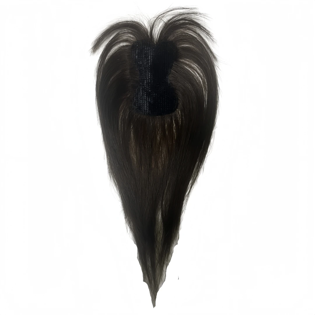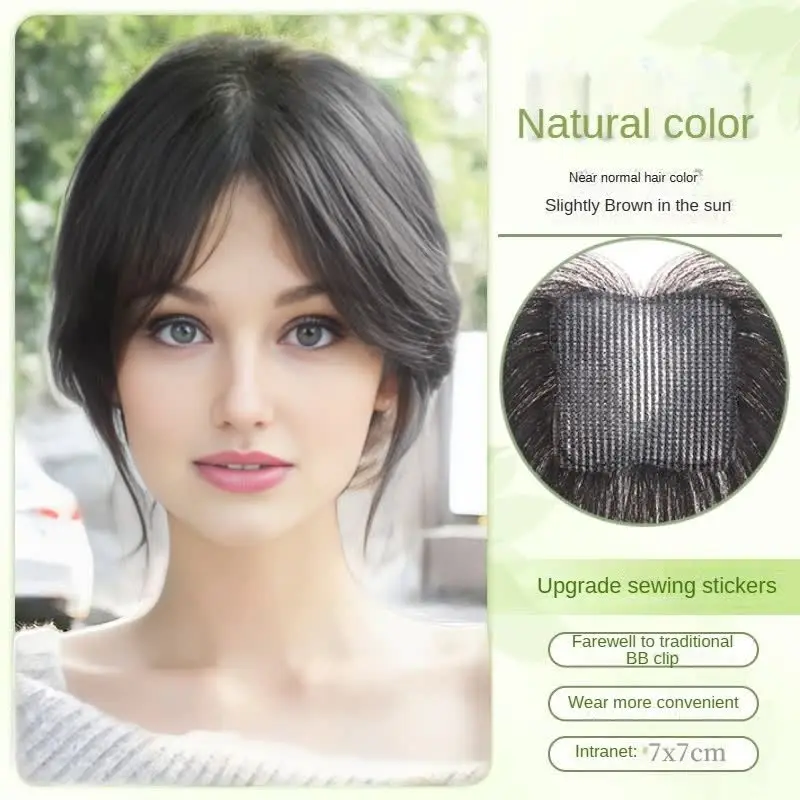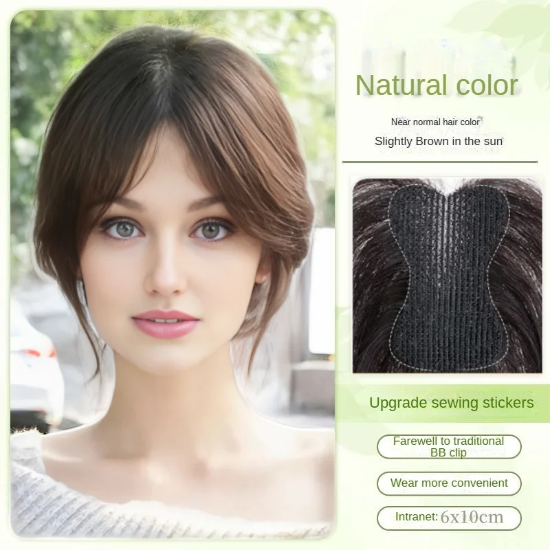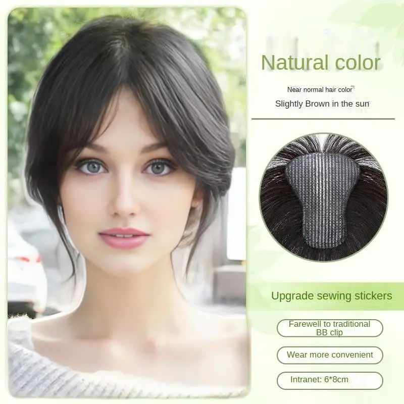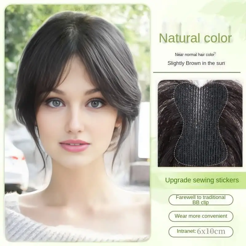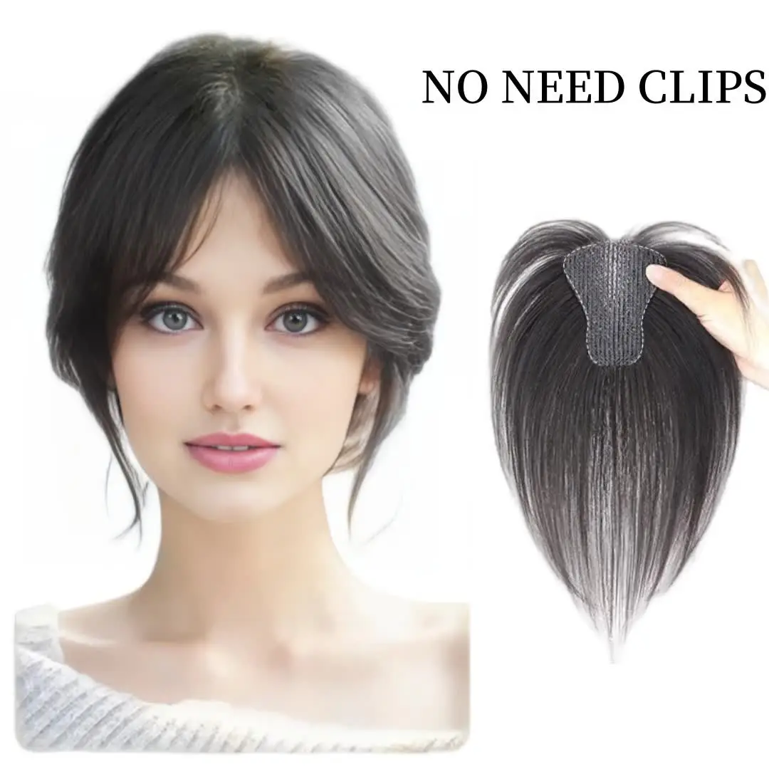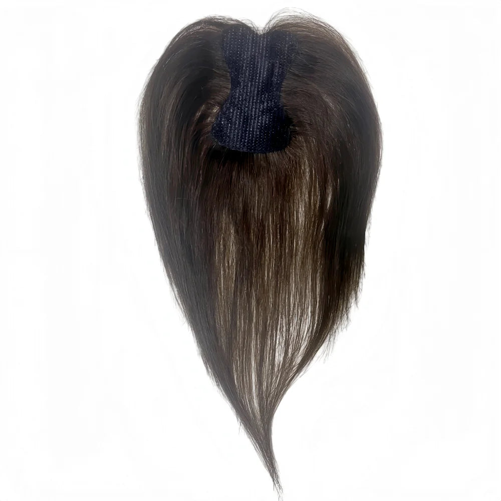 Adesivos de cabelo humano com gancho e laço, pasta mágica, toppers de cabelo para mulheres, sem clipe, cabelo humano, divisão intermediária, franja lateral de 10 polegadas