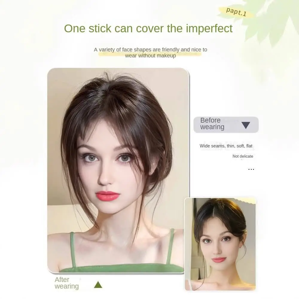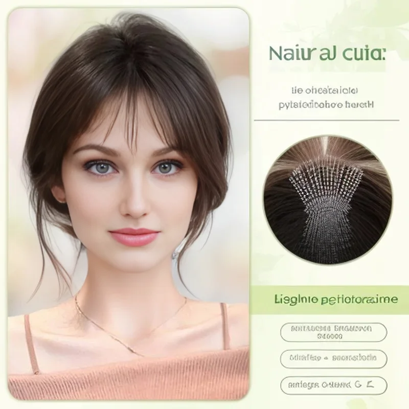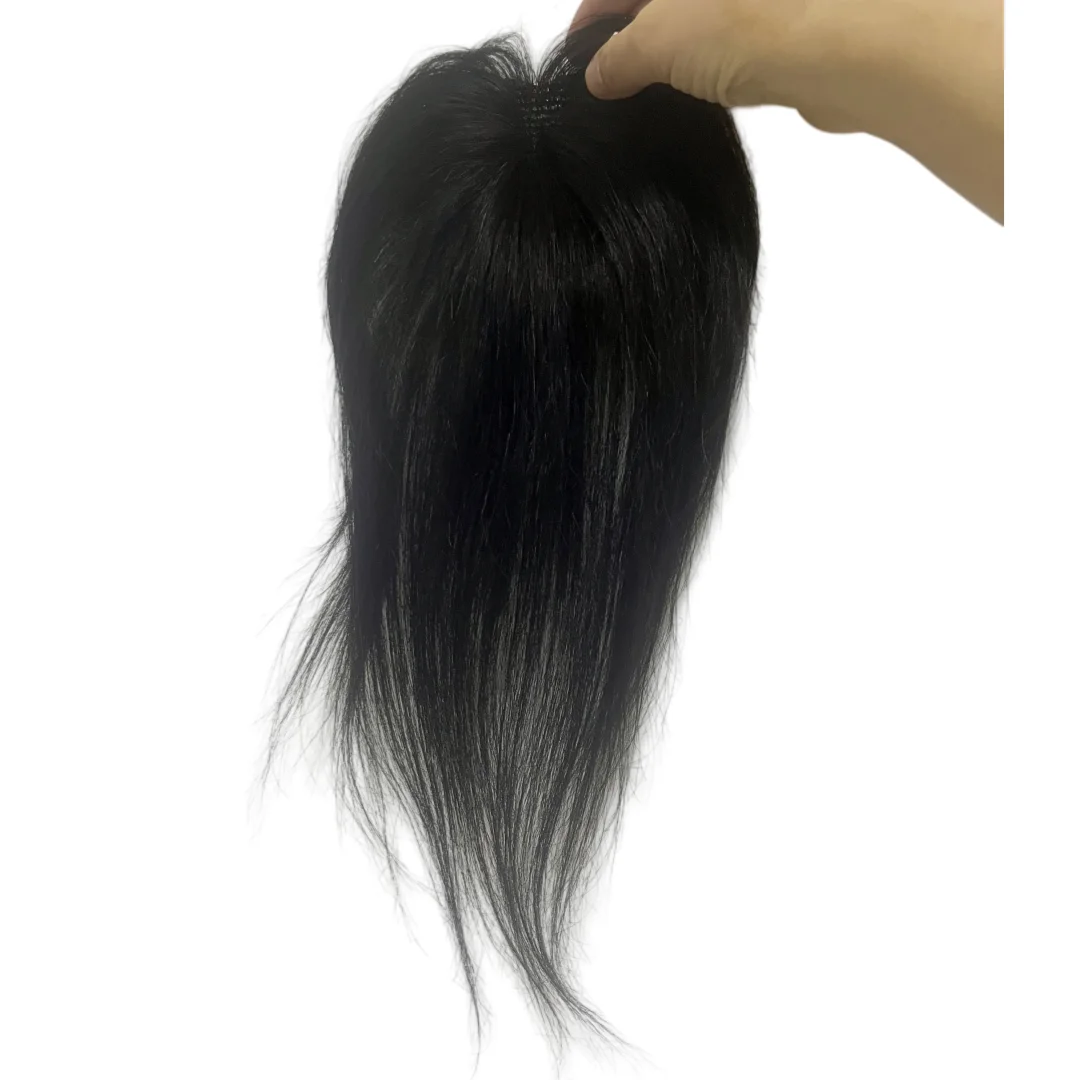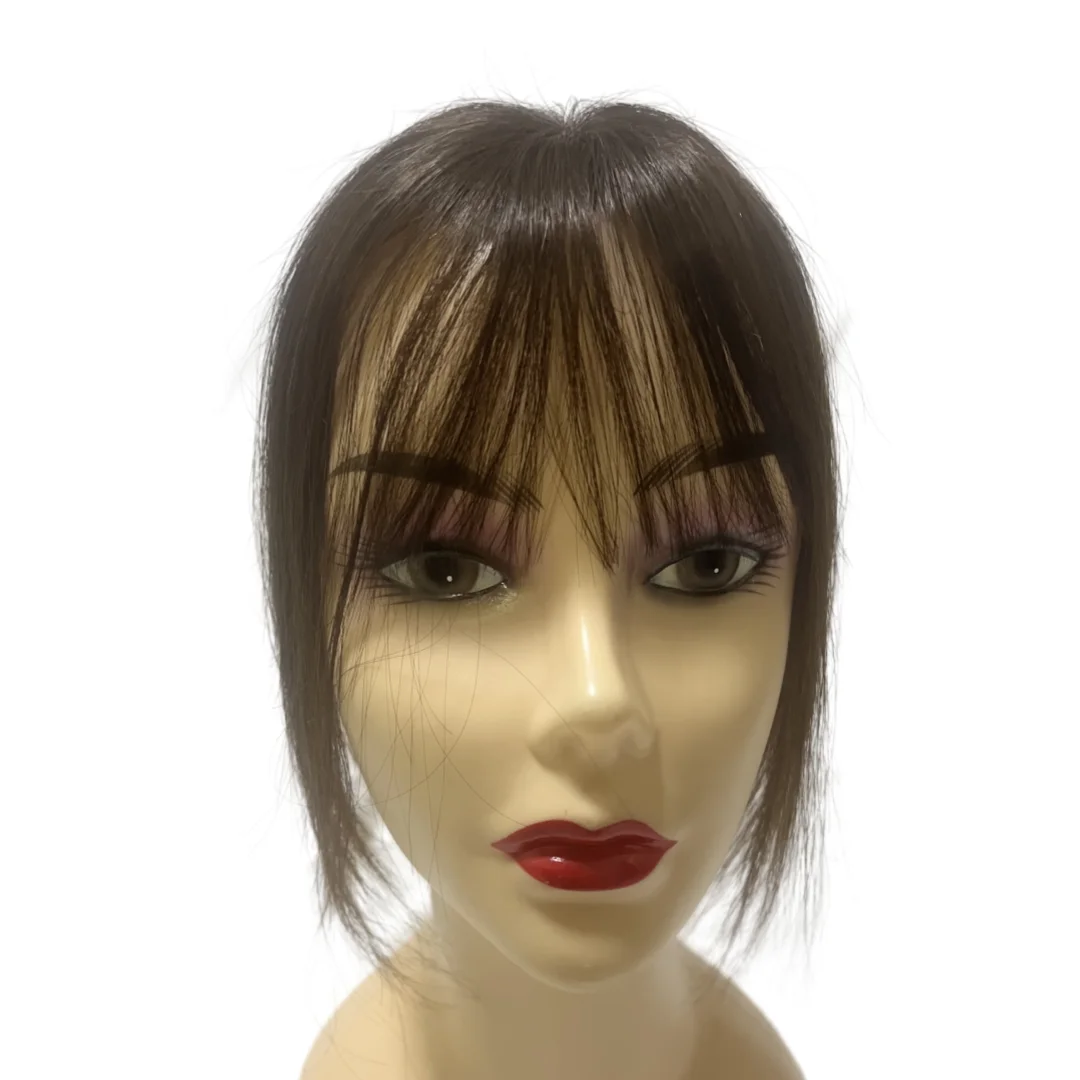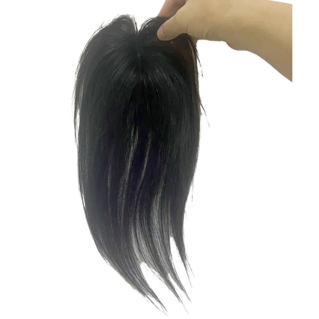 Adesivos de cabelo humano com gancho e laço, pasta mágica, toppers de cabelo para mulheres, sem clipe, cabelo humano, divisão intermediária, franja lateral de 10 polegadas