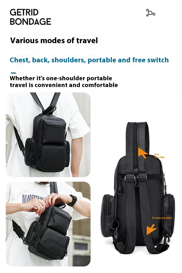 Mochila multifuncional e multi-bolso para homens, bolsa de peito leve, bolsa transversal diagonal, cor sólida
