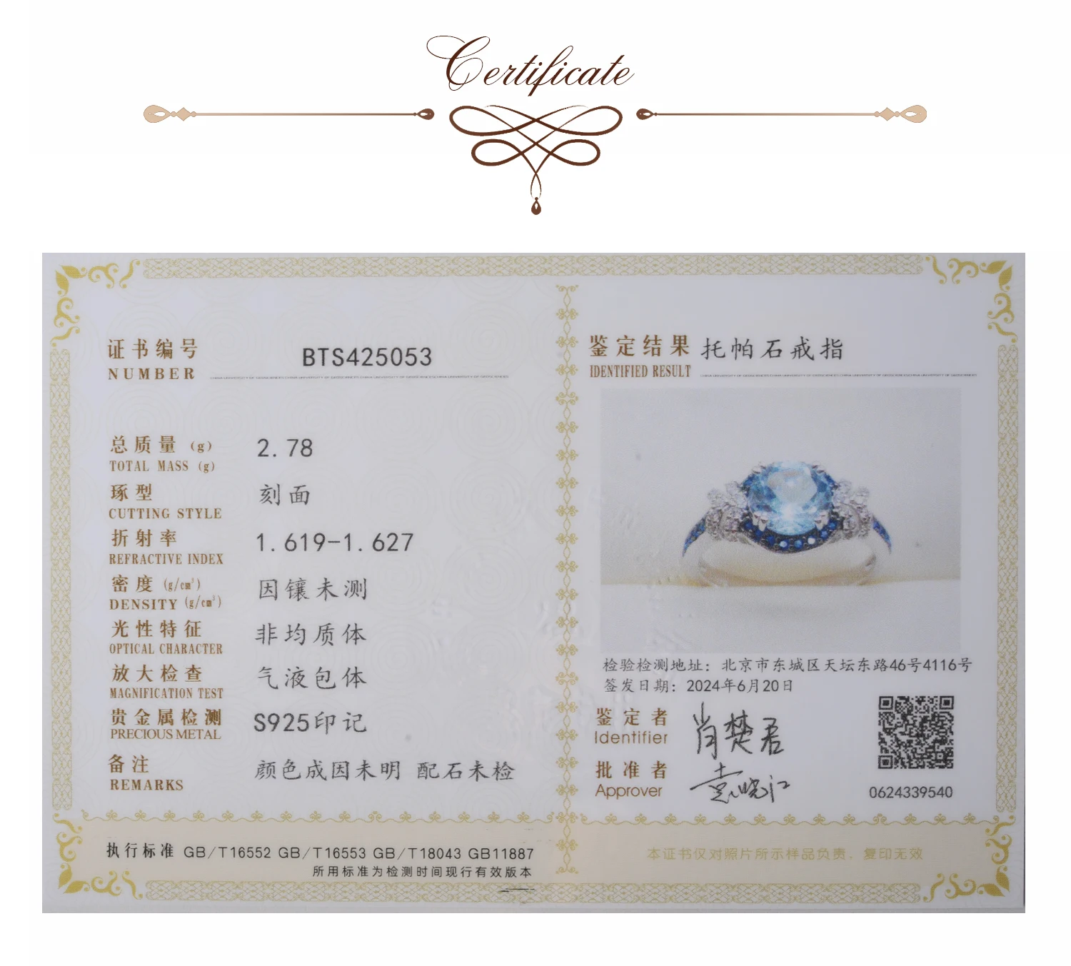 Apoiado por um certificado do BEIJING CUG GEM TESTING CENTER, garantindo a autenticidade e qualidade das pedras preciosas.