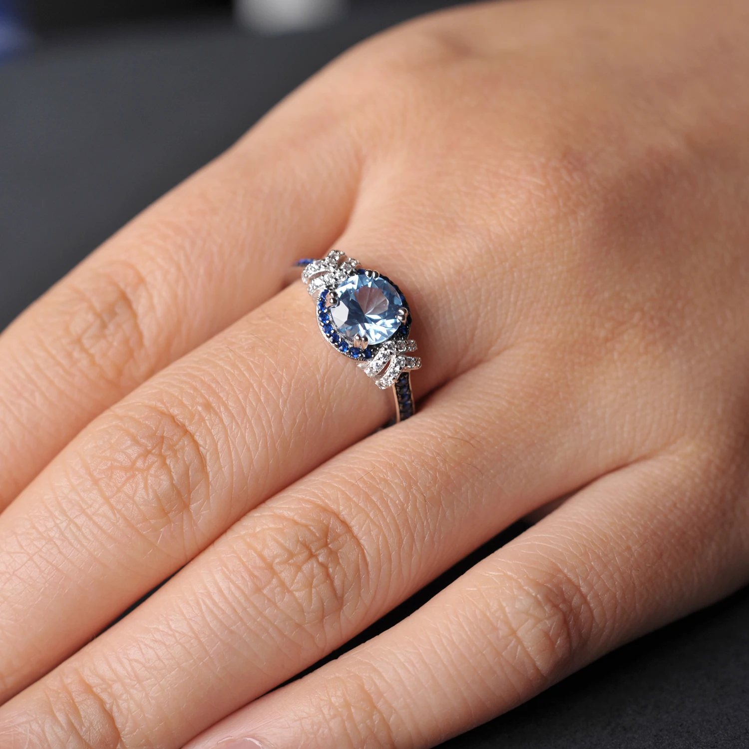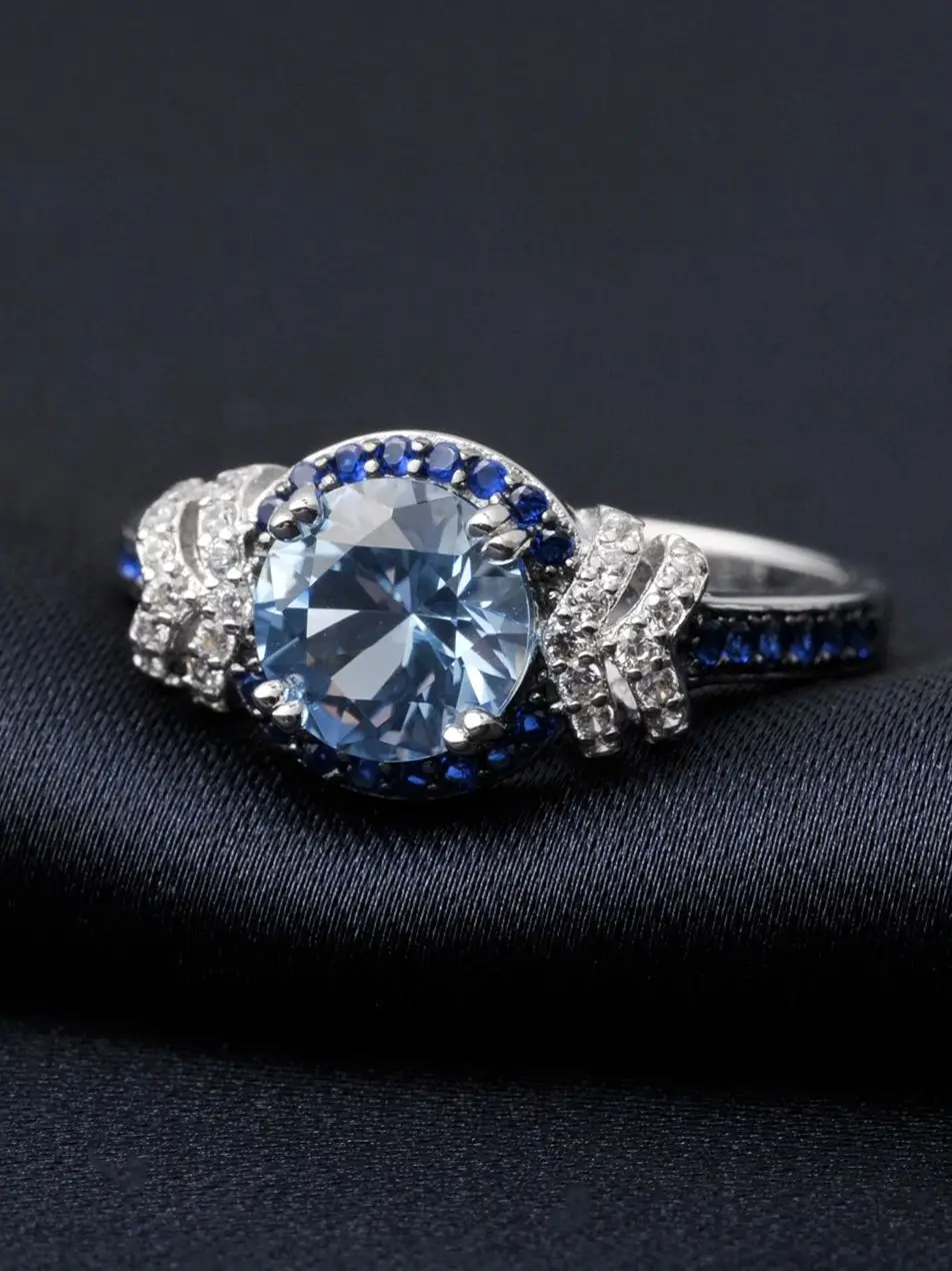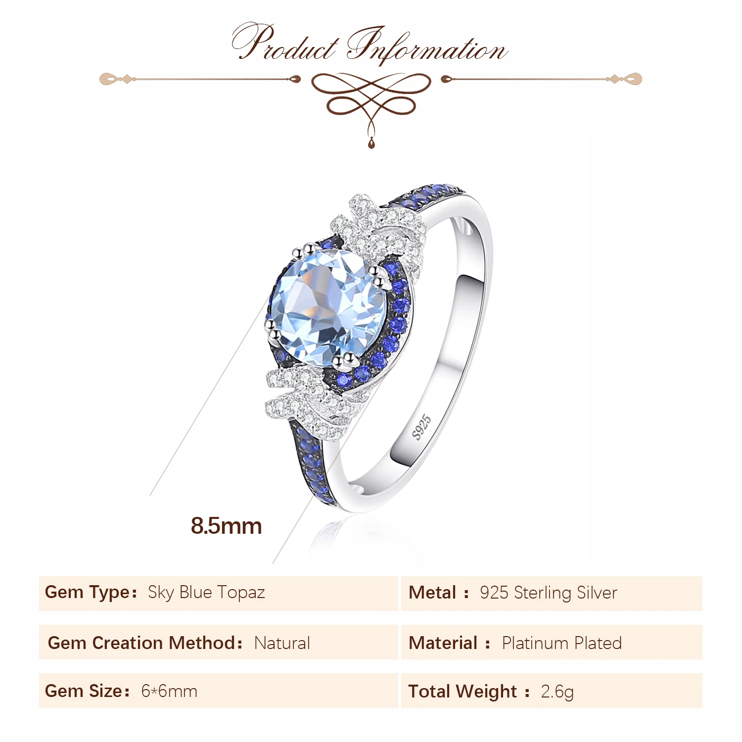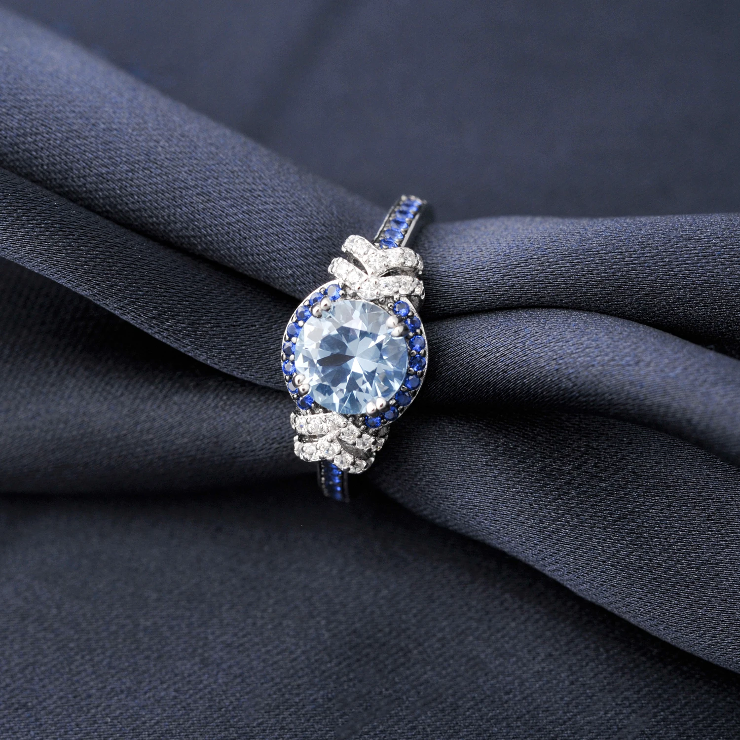 Potiy bonito redondo natural 1.5ct céu azul topázio halo anel para seu cocktail anel 925 prata esterlina para mulher pedras de aniversário diárias gi