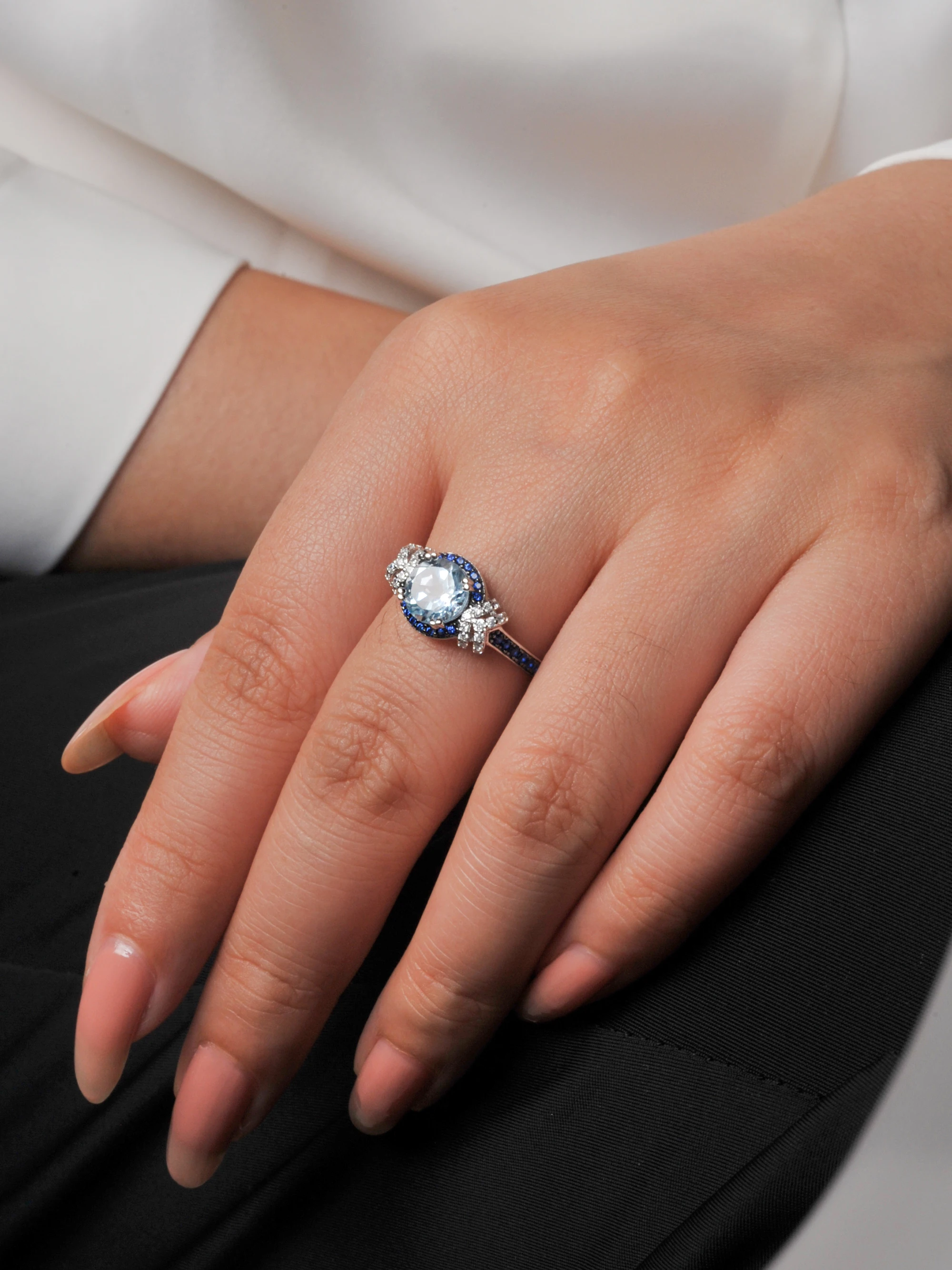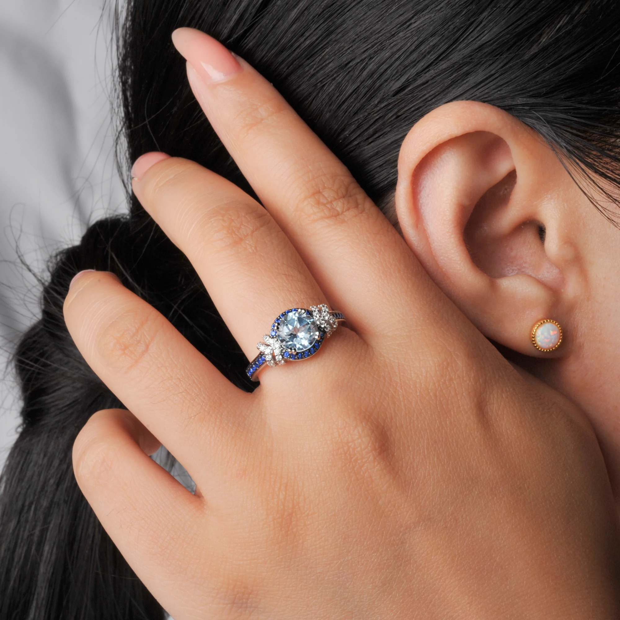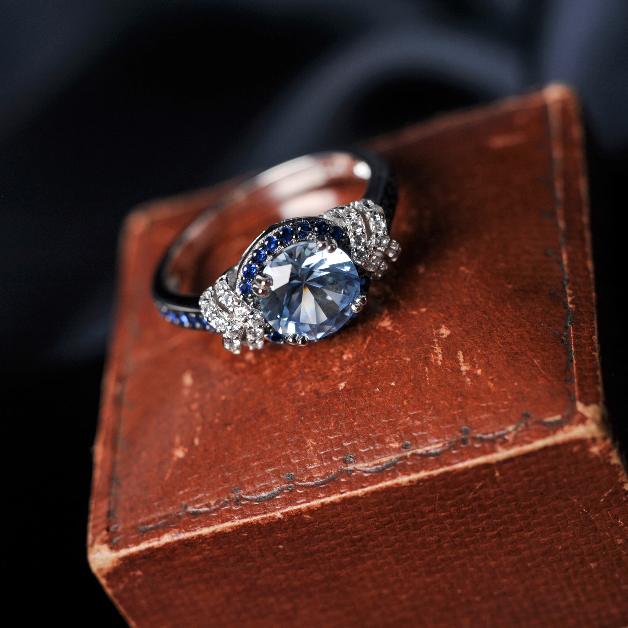 Potiy bonito redondo natural 1.5ct céu azul topázio halo anel para seu cocktail anel 925 prata esterlina para mulher pedras de aniversário diárias gi