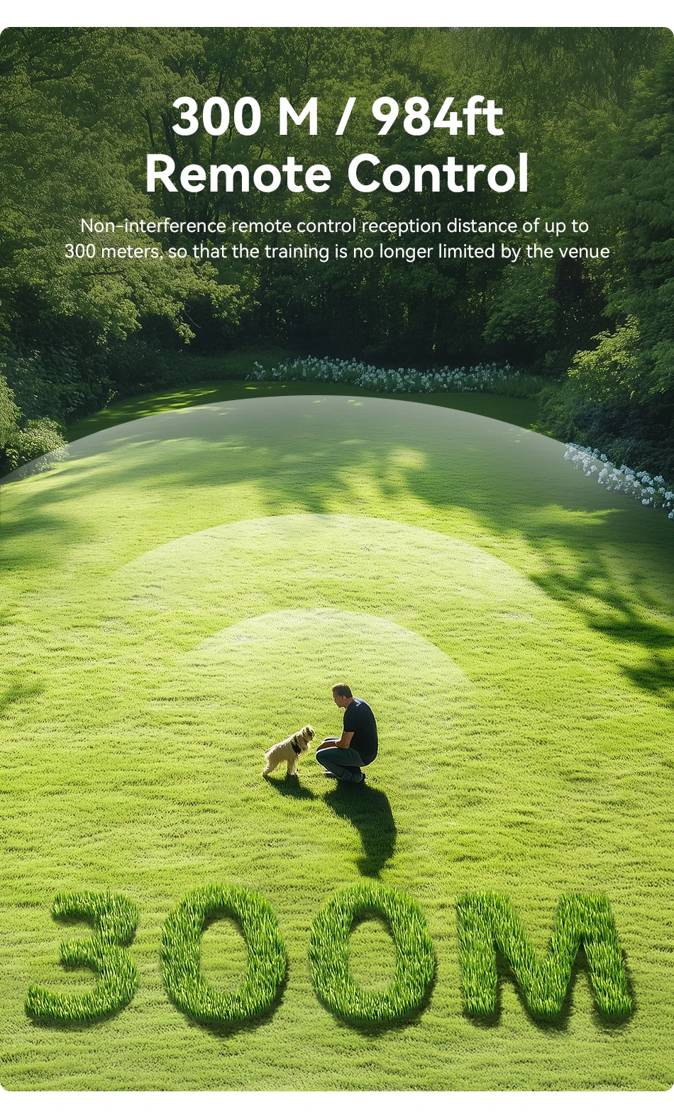 Product Feature 6: 300M/984ft Remote Control. Non-interference remote control reception distance of up to 300 meters, so that the training is no longer limited by the venue