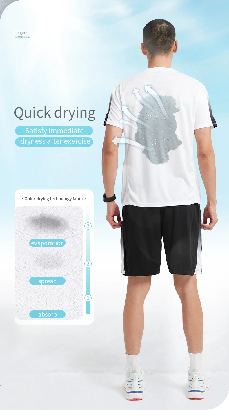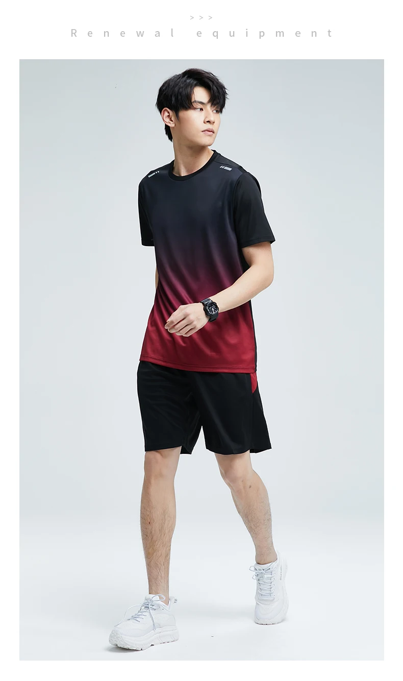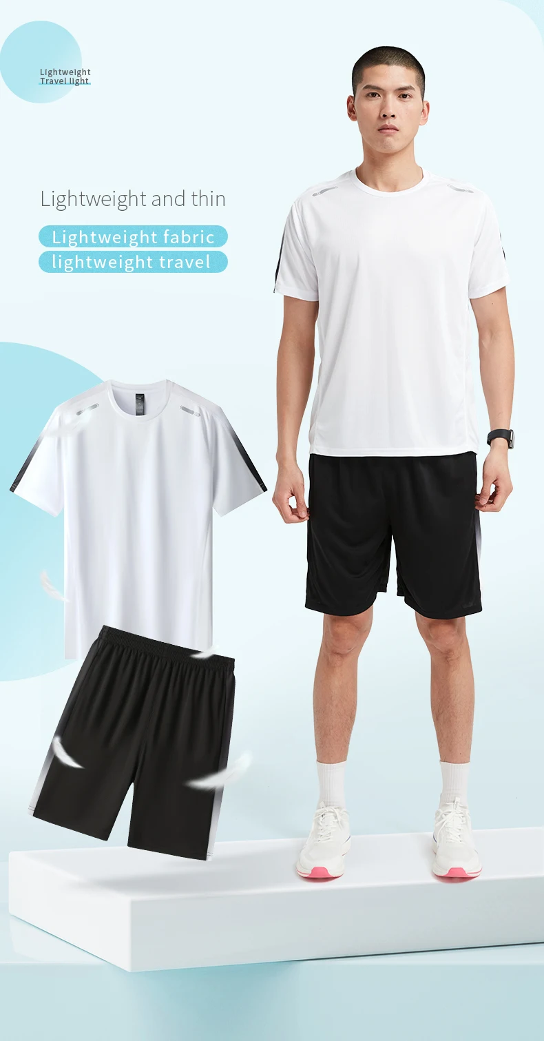 Camiseta e shorts de manga curta de secagem rápida masculina, roupa esportiva respirável, casual de corrida, conjunto fitness, primavera, verão 2022