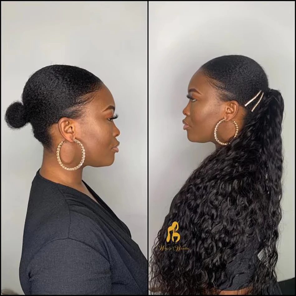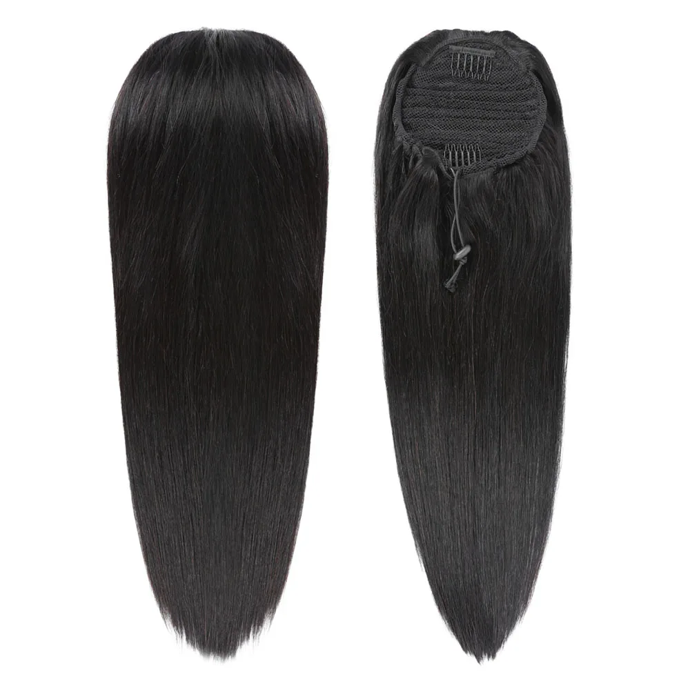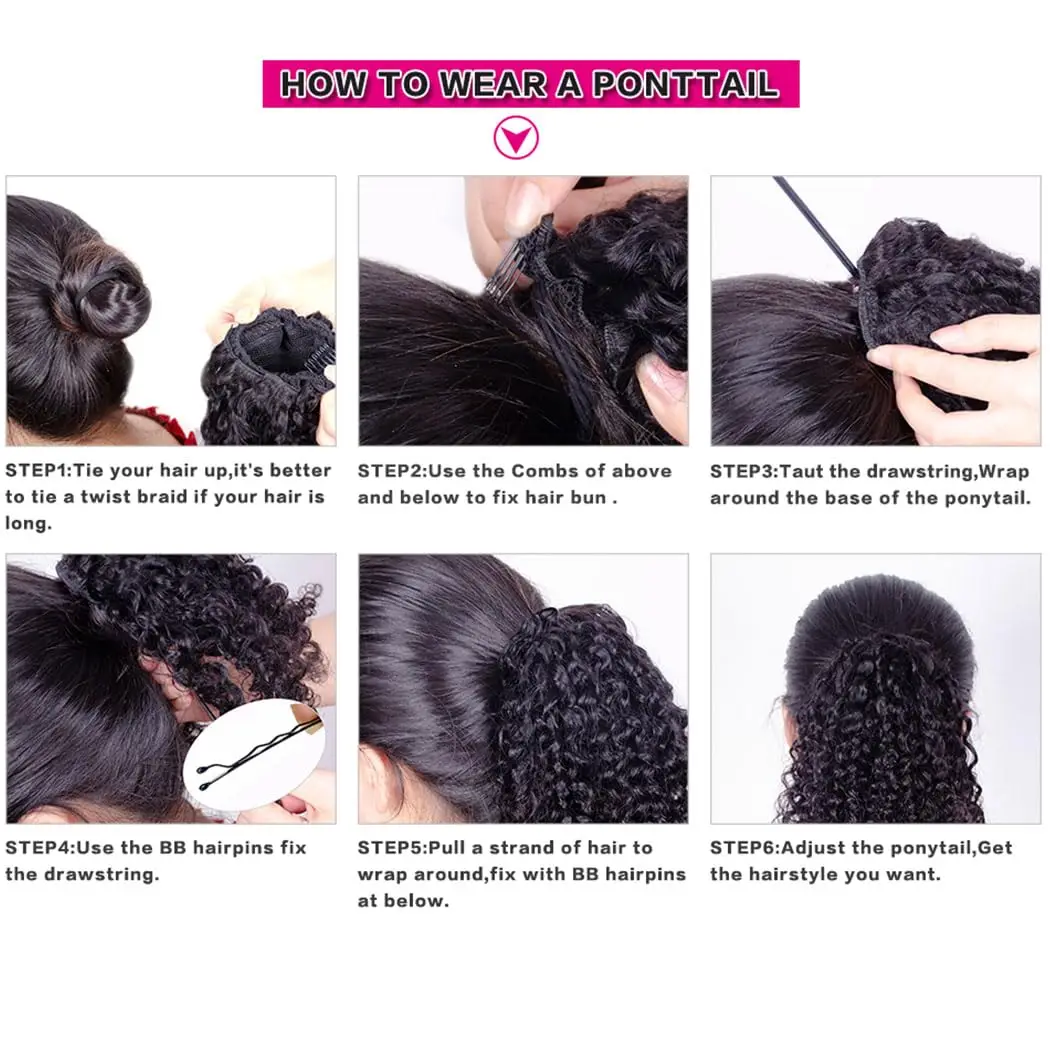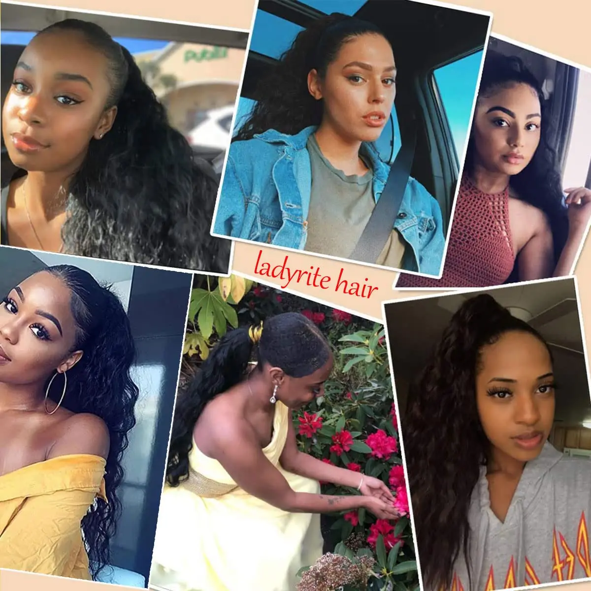 100% cabelo humano cordão rabo de cavalo extensão onda de água clipe de rabo de cavalo em extensões de rabo de cavalo
