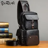 YoReAi Moda Masculina Sacos de Couro Sling Zipper Pack Peito Ombro Crossbody Bag Biker Satchel Homens Pastas de Vendas Pacotes Esportivos